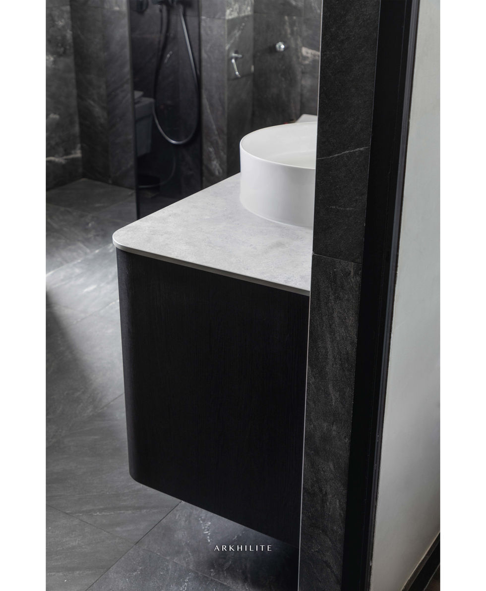 The apartment in downtown Singapore, which belongs to a young couple, is very small in area. To maximize space, the public arena which consists of the Kitchen, Dining and Living, is in one open continuous space. This space leads further to an outdoor balcony. The private spaces of a bedroom, a utility room and a bathroom are tucked away.